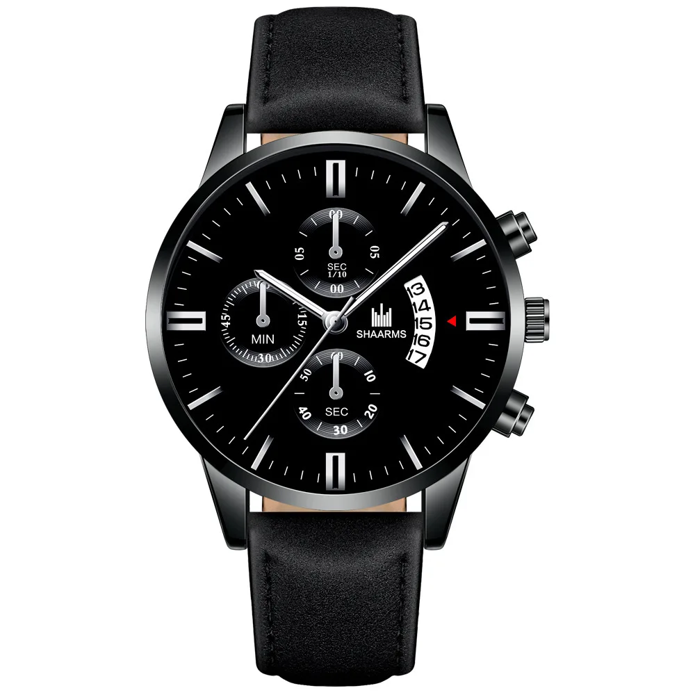 Часы мужские, повседневные, кварцевые, с кожаным ремешком, черные, ...