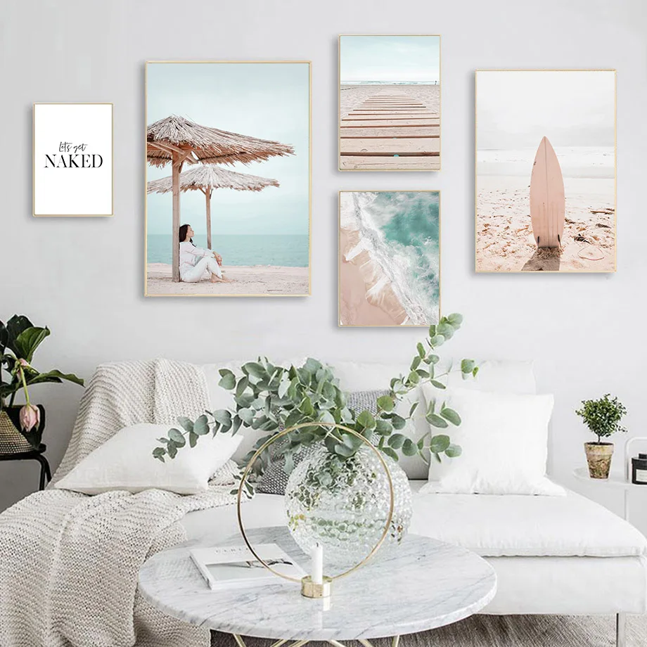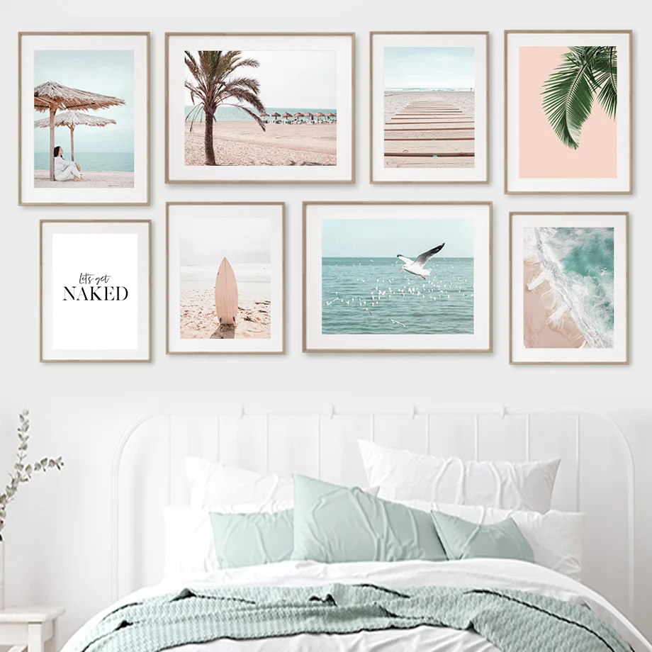 Доска для серфинга, пальма, Чайка, океан, природа, настенная живопись на холсте, скандинавские постеры и принты, настенные картины для декора гостиной