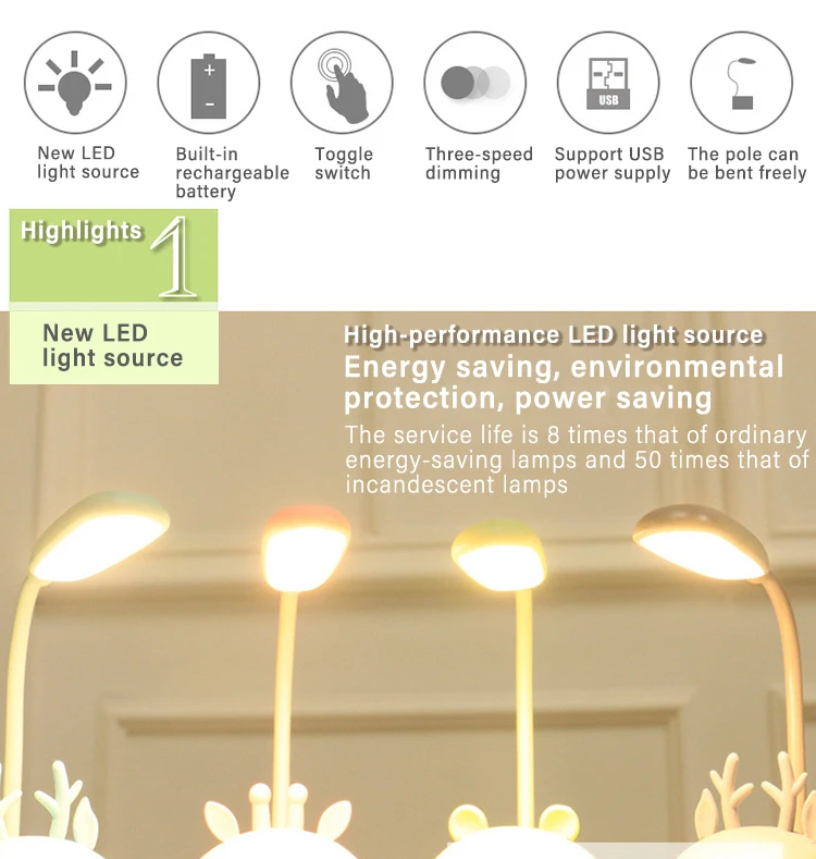 1. Милая Настольная лампа с оленем, четыре цвета на выбор, новый светодиодный светильник, энергосбережение, охрана окружающей среды и энергосбережение.