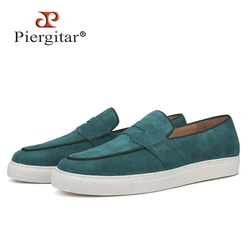 Кеды Piergitar мужские, Вулканизированная подошва, зеленые лоферы, ручная работа, плоская подошва, замша, 2021
