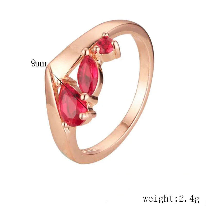 FJ 9 мм женские новые красные кубические циркониевые кольца 585 розовое золото V обручальные кольца