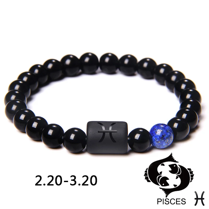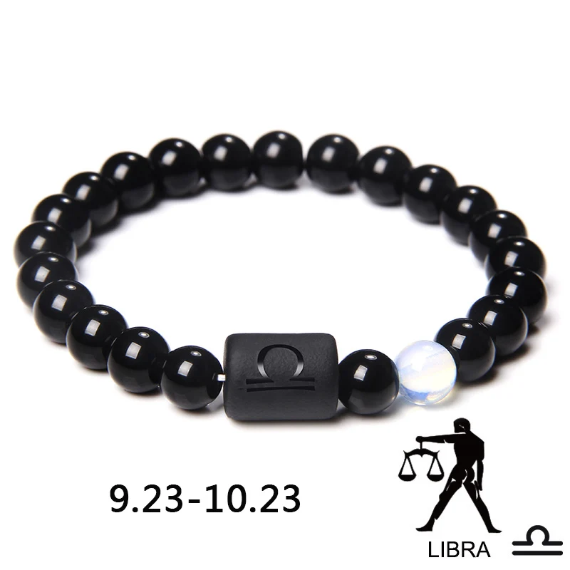 12 знаков зодиака браслет для пары натуральный Шарм с бусинами из камня браслет лучший друг Лев Дева весы растягивающийся браслет для мужчин и женщин