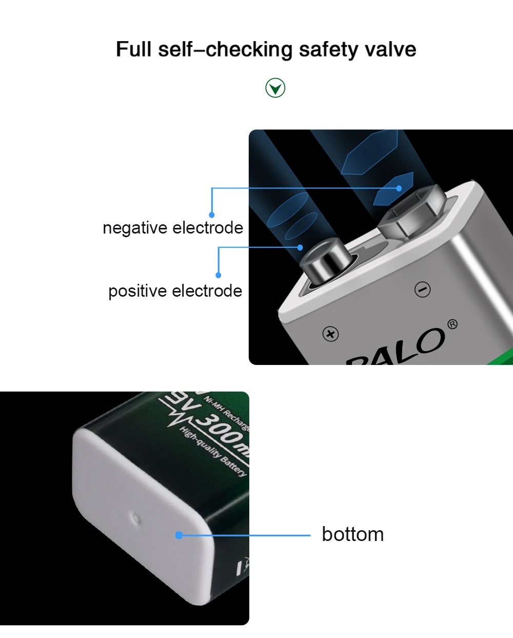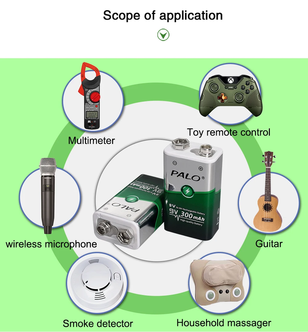 Батарея 6F22 9 В, перезаряжаемая батарея 300 мАч Ni-MH NiMh 9 В для микрофона, гитары, дымовой сигнализации, мультиметра
