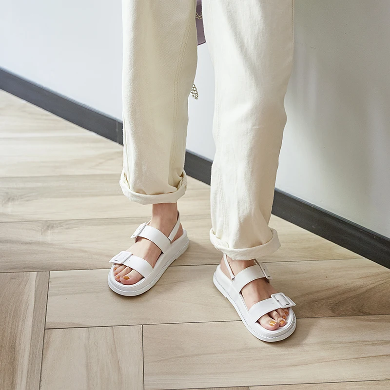 Сандалии женские из натуральной кожи, на плоской подошве, с пряжкой, повседневные, летние, пляжные, на низком каблуке, ручная работа, o053