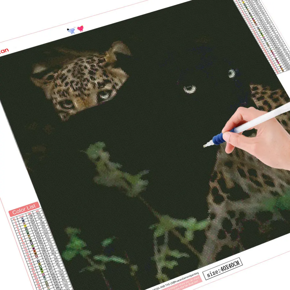 Художественная картина HUACAN сделай сам с алмазами, настенное украшение, полноразмернаякруглая Алмазная мозаика с леопардовым принтом, животное, ручная работа
