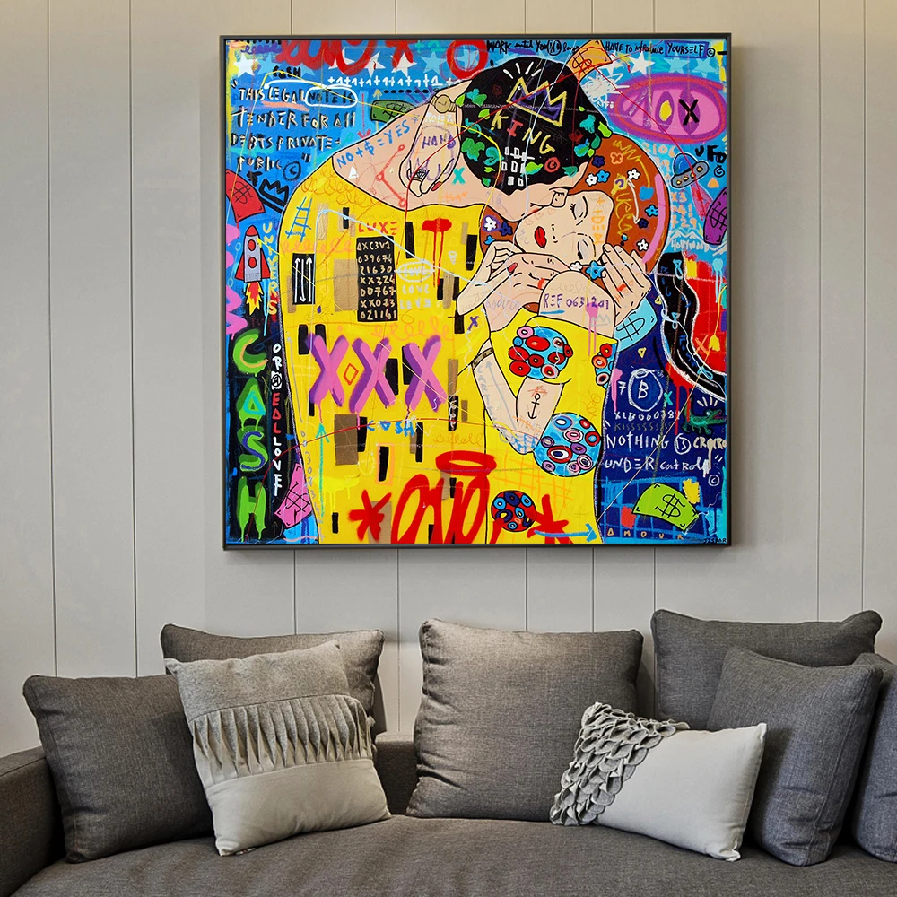 Современные настенные картины влюбленные пары граффити художественн...