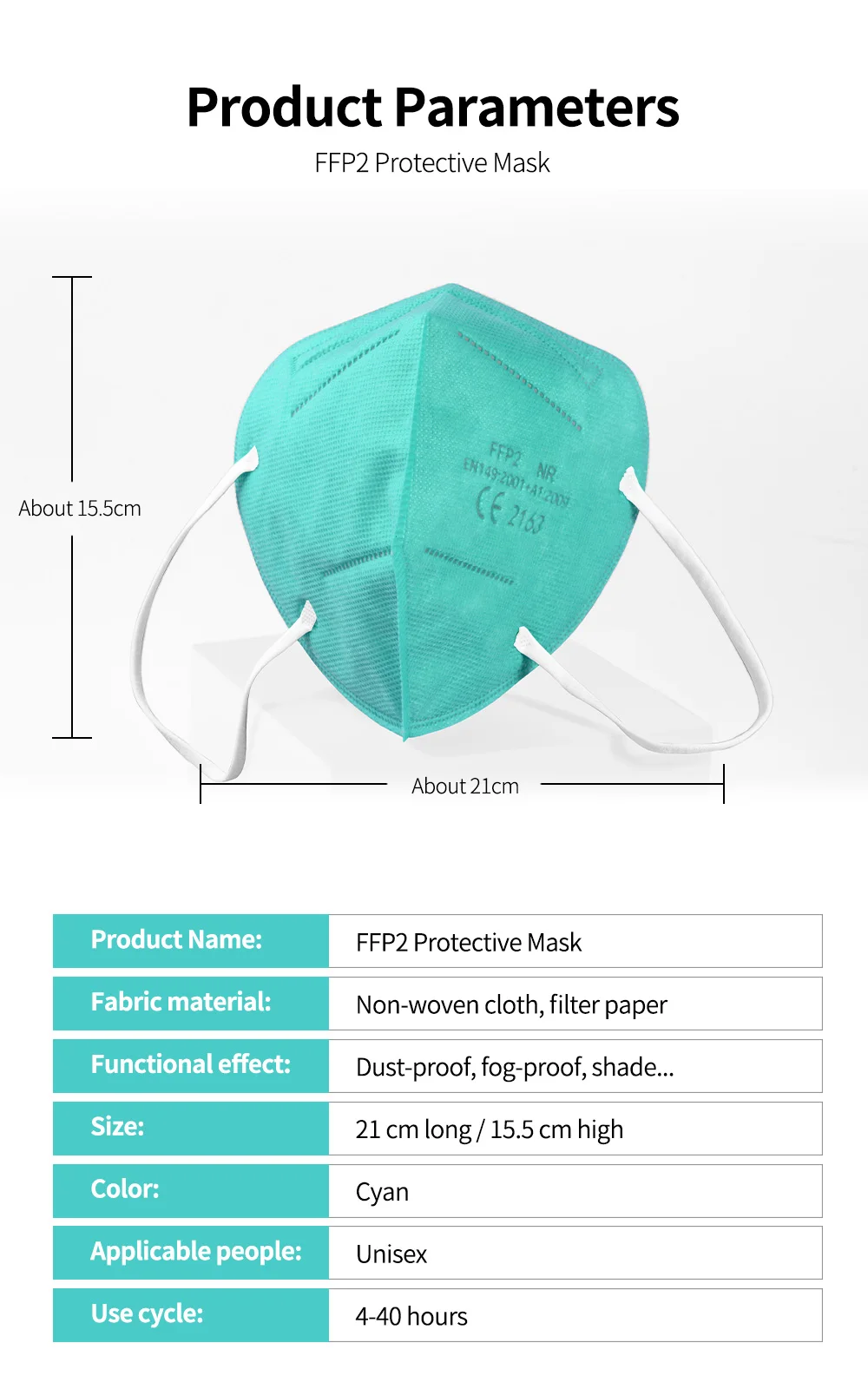 Подробная информация о масках:* Цвет: серый* Тип: Ношение ушей* Материал: Нетканая ткань + фильтрующий слой* Стандарт: GB2626-2006* Класс защиты: маска kn95 ffp2* Скорость фильтрации: ≥ 95% (0,075мкм частиц)Дополнительные особенности маски:* Сохраняет тепло и водонепроницаемость* Мягкая текстура и удобная одежда* Фильтрация PM 2,5 с коэффициентом эффективности до 95%Маска не является одноразовой. Этот специальный чехол (недостаток ресурсов) можно использовать повторно. Но есть условия:1. При получении загрязнений, таких как слюна, кровь, слезы и другие жидкости в организме, их необходимо заменить.2. Пользователь, очевидно, чувствует, что сопротивление дыханию больше, чем раньше и должно быть заменено.3. Маски повреждены и должны быть заменены.Пожалуйста, обратите внимание, что указанный Товар производится и распространен за рубежом и в соответствии с законодательством страны его происхождения.