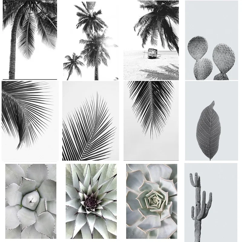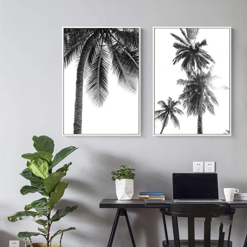 Черно-белый пейзаж Пляж пальмы украшения Nordica дома плакат с изображением сада Спальня украшения фотографии холст для живописи