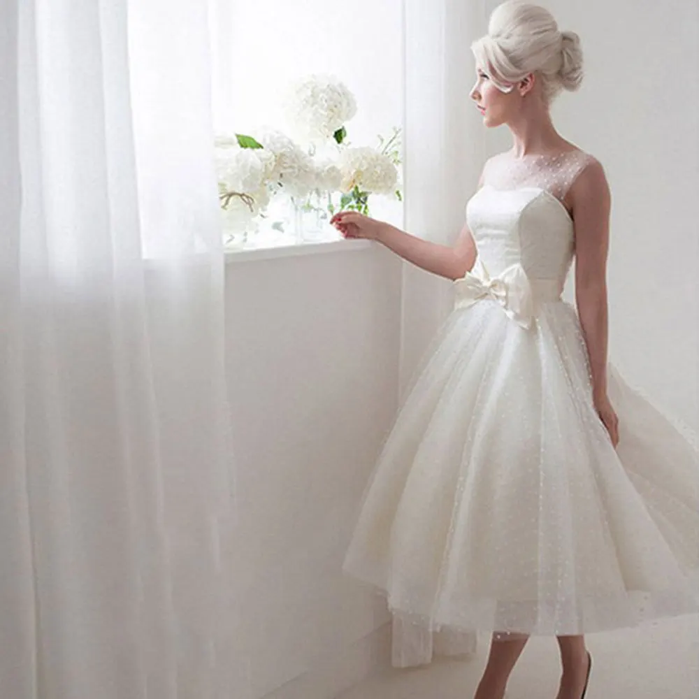 Короткие свадебные платья, белые, с открытой спиной, до колена, пля...