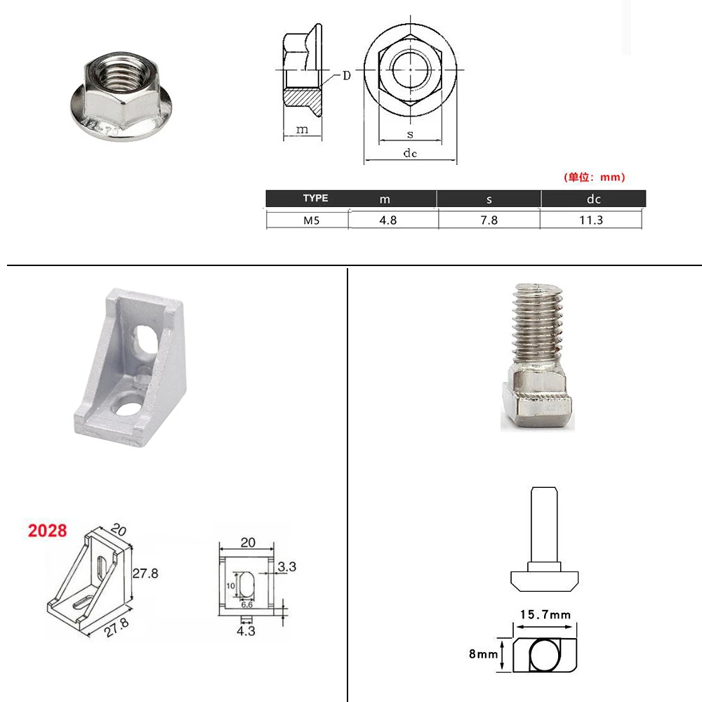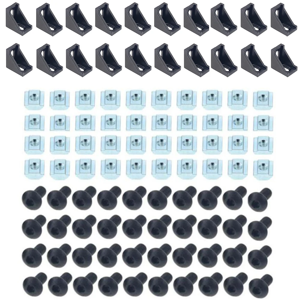 Набор коннекторов из 2028 алюминиевого профиля: 20 шт. 2028 угловой кронштейн + 40 шт. 20 серий M5 Т-образные гайки + 40 шт. m5x10 мм Шестигранная головка