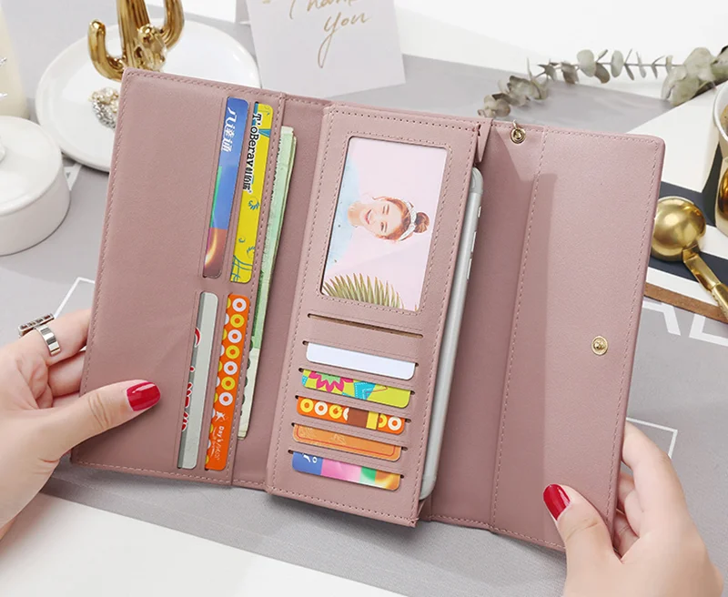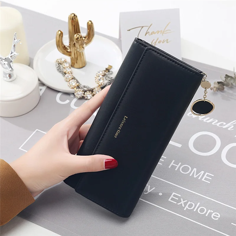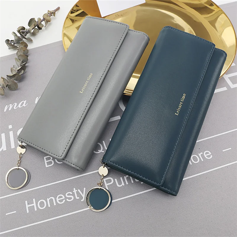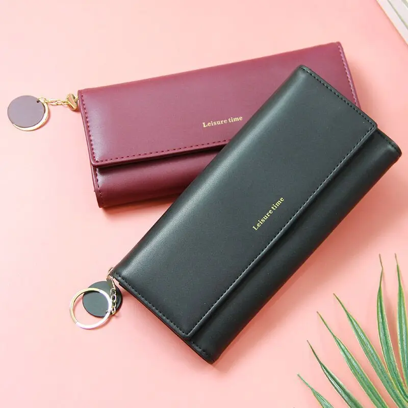 Модный женский длинный кошелек с подвеской тройного сложения, женские кошельки из искусственной кожи, кошелек для монет, клатч на молнии, держатель для удостоверения личности и кредитных карт, зажим