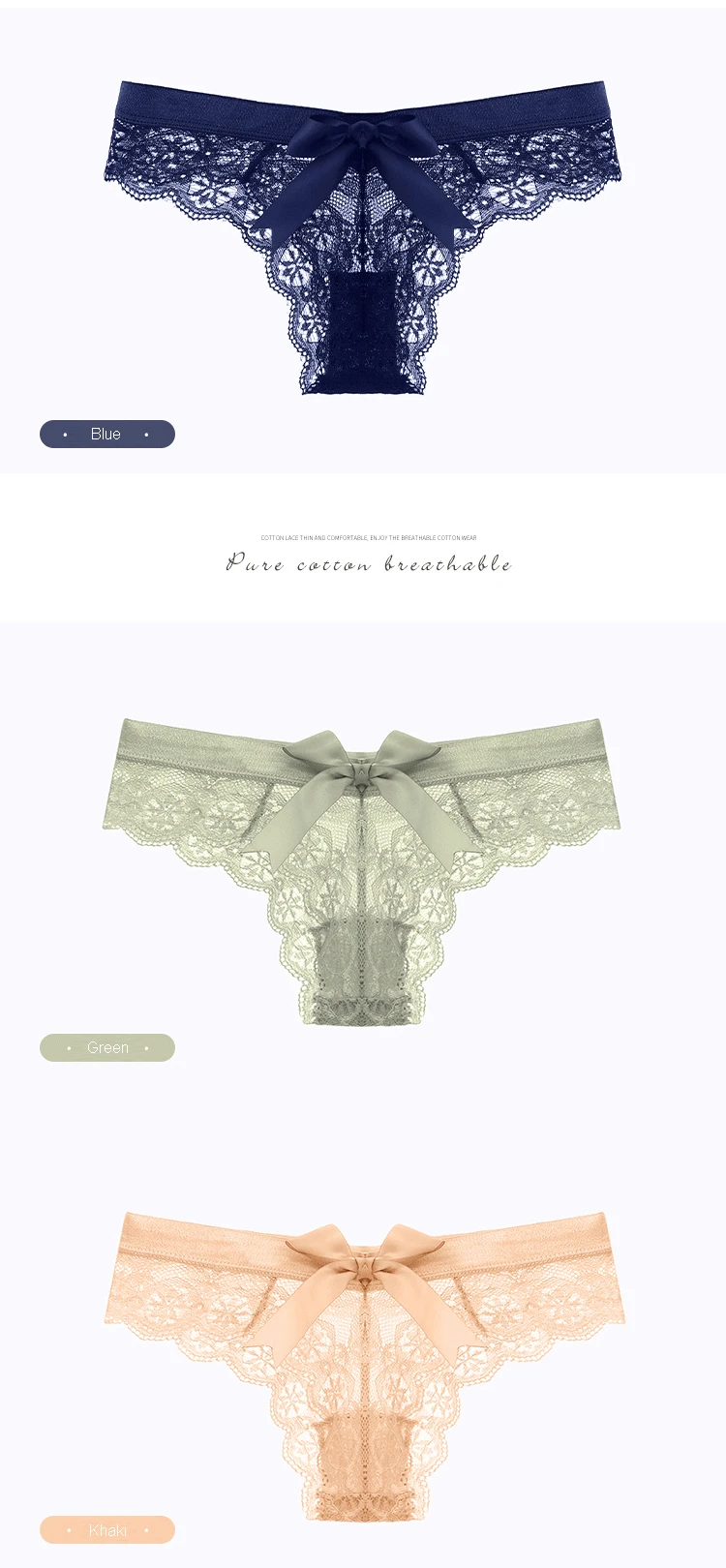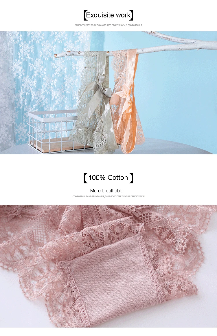 Трусы женские кружевные из чистого хлопка, пикантные низкая талия Б...