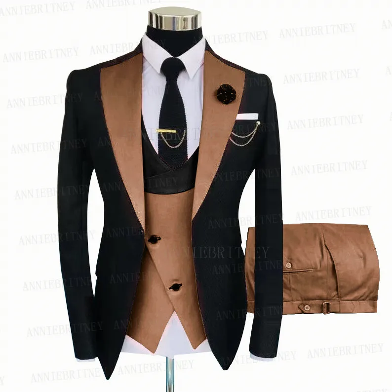 Деловой мужской костюм из 3 предметов, приталенный деловой пиджак-смокинг для жениха, Лучший мужской костюм на свадьбу, коричневый жилет, брюки, комплект