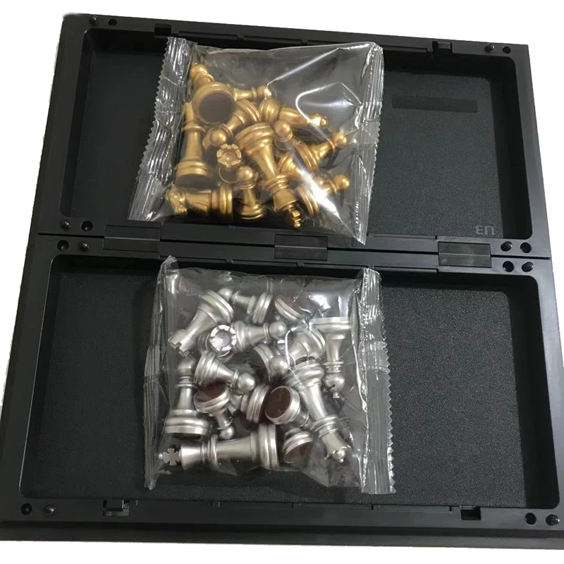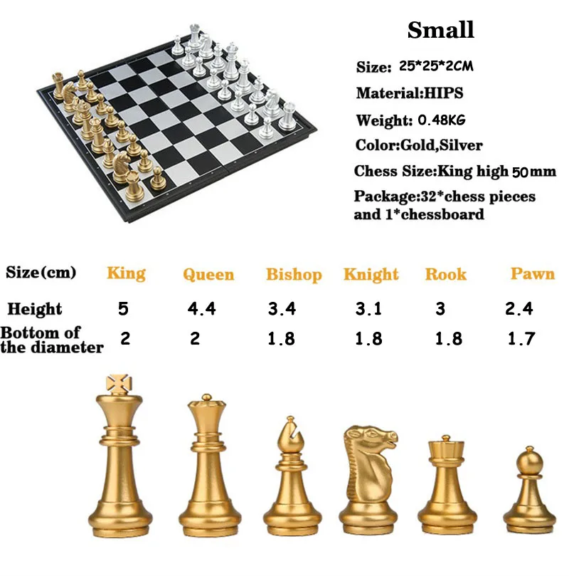 Шахматы изготовлены из ударопрочного пластика hips, который более износостойкий, твердый и экологически чистый.Шахматные фигуры содержат магниты, которые можно адсорбировать на шахматной доске. Скользить при игре в шахматы нелегко. Он устойчив к падению, дно шахматных фигур имеет технологию флокирования, а ниспадающие фигуры не будут шумить и царапать поверхность шахматной доски. Золотистый и серебристый дизайн очень высококачественный и прочный.Поверхность шахматной доски напечатана железным листом макоу, а рисунок четкий. На ней легко учить буквами и цифрами. Доску удобно складывать для переноски. Шахматная доска имеет специальную пряжку, а кусочки непросто потерять.