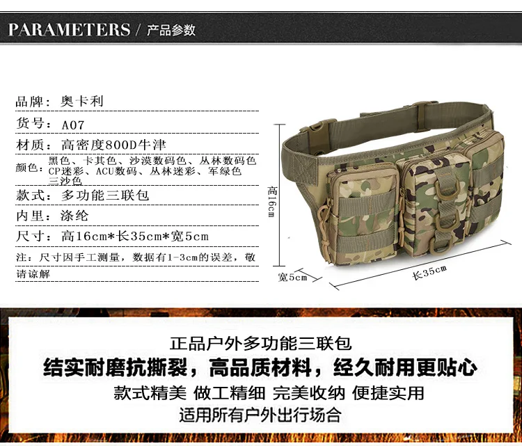 [Наименование]: маленькая поясная сумка 【Номер товара: A07 [Ткань]: 800D ткань Оксфорд [Вес нетто]: 0,24 КГ [Емкость]: 2л