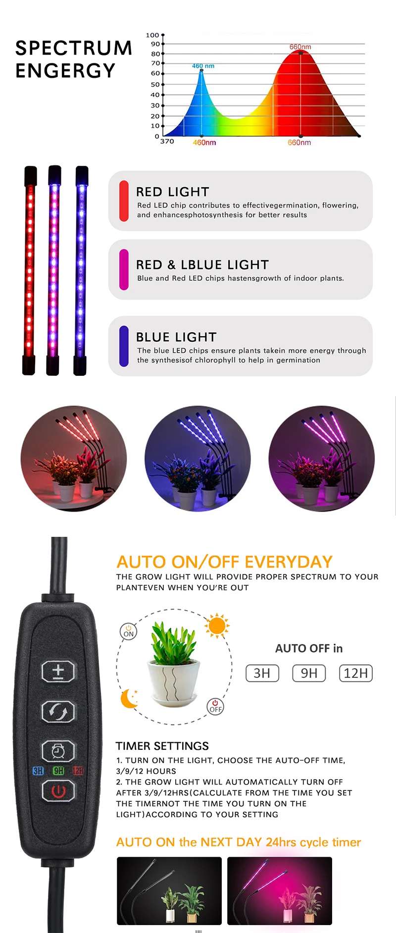 * В тех случаях, когда вы посадки цветов, пожалуйста, Отрегулируйте высоту, а также дополнительное светильник тела, а также подходит для роста. Рекомендуется, чтобы высота растения до корпуса лампы была 20 см (7,87 дюйма).* Пожалуйста, выберите подходящий светильник в соответствии с типами растений или цветов.* О желтых листьях: желтые листья обнаруживаются во время процесса посадки, в основном из-за недостаточных или чрезмерных питательных веществ. Пожалуйста, добавьте необходимое количество питательных веществ в соответствии с потребностями роста растений.* Желтые и Увядшие листья: в процессе посадки были обнаружены желтые или даже засохшие листья и молодые почки. Основная причина заключается в том, что температура окружающей среды слишком высокая (более 30 градусов в течение длительного времени), отсутствие вентиляции или качества почвы, из-за чего листья выгорают, а корни гниют. Пожалуйста, охладите и проветрите вовремя.* Возможны некоторые отклонения из-за ручного измерения или небольшой разницы в цвете из-за условий фотографирования. Спасибо за понимание.
