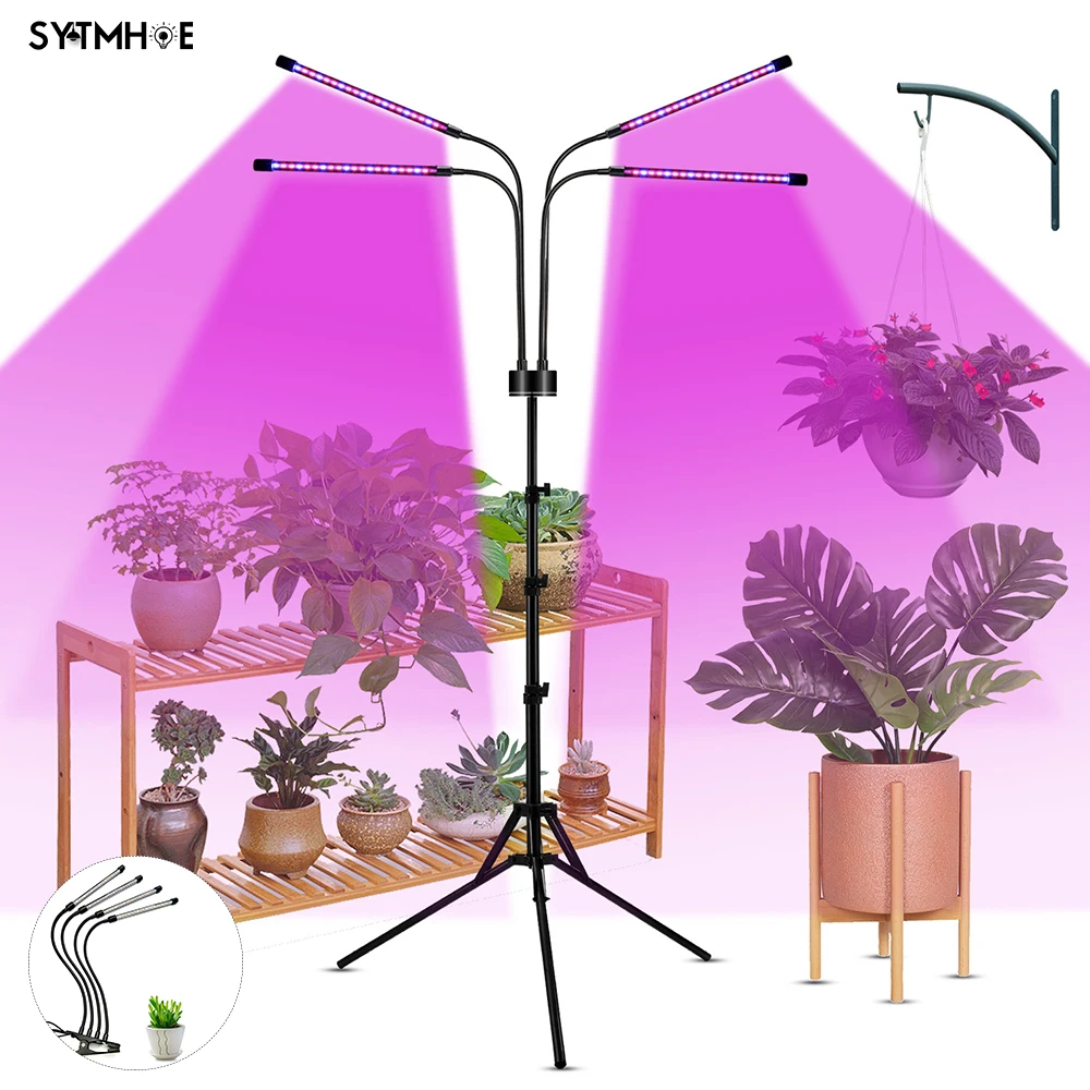 Комнатный светодиодный светильник полного спектра для выращивания растений, вращающийся светильник для гидропоники, лучшего роста цветов, лампа для выращивания растений с телескопической стойкой или зажимом