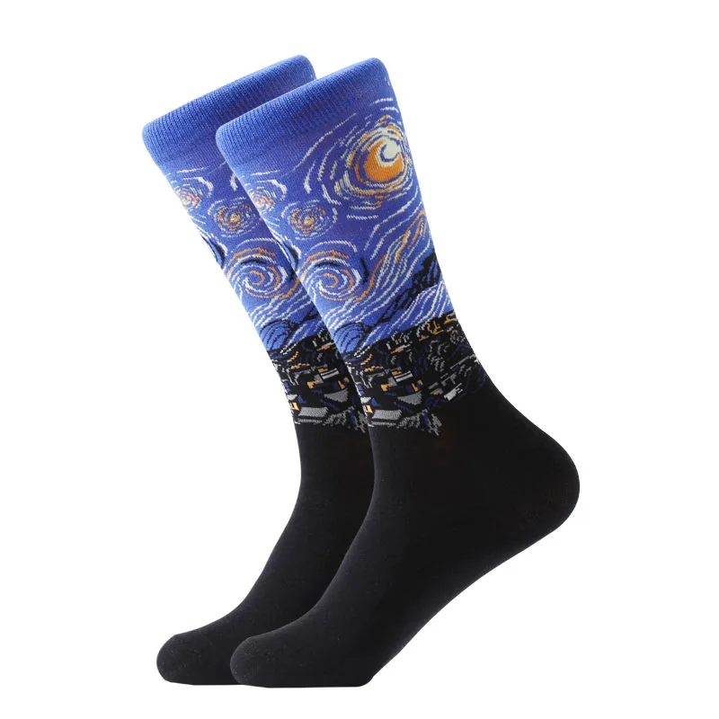 Если вам нравится искусство, вам понравится этот носок. Каждая пара обуви отличается от произведений искусства от известного художника. Яркие, уникальные, эти носки подчеркнут очарование моды.