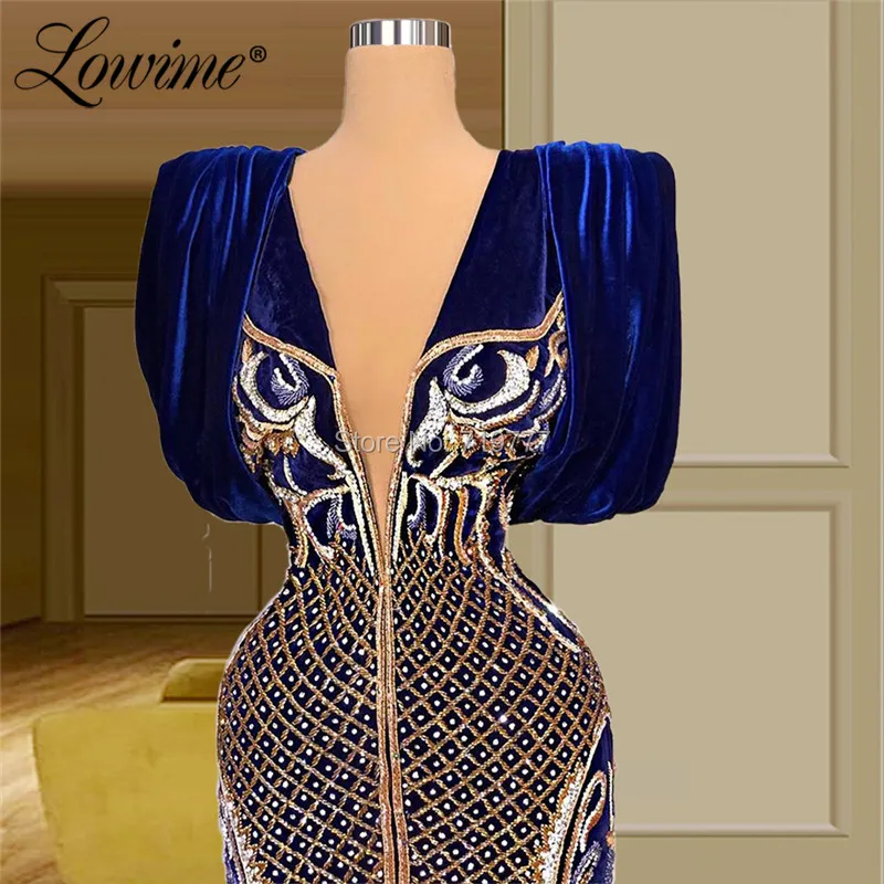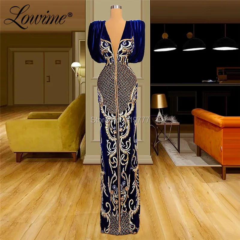 Женское вечернее платье до пола, из велюра, с вышивкой и V-образным вырезом, ярко-синего цвета, арабское праздничное платье