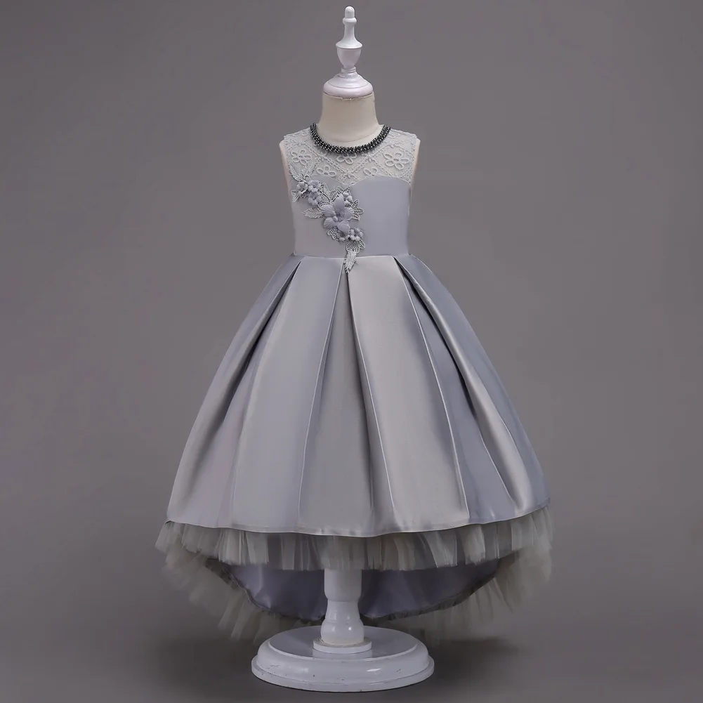 Платье для девочек, кружевное, с аппликацией, с сетчатым хвостом