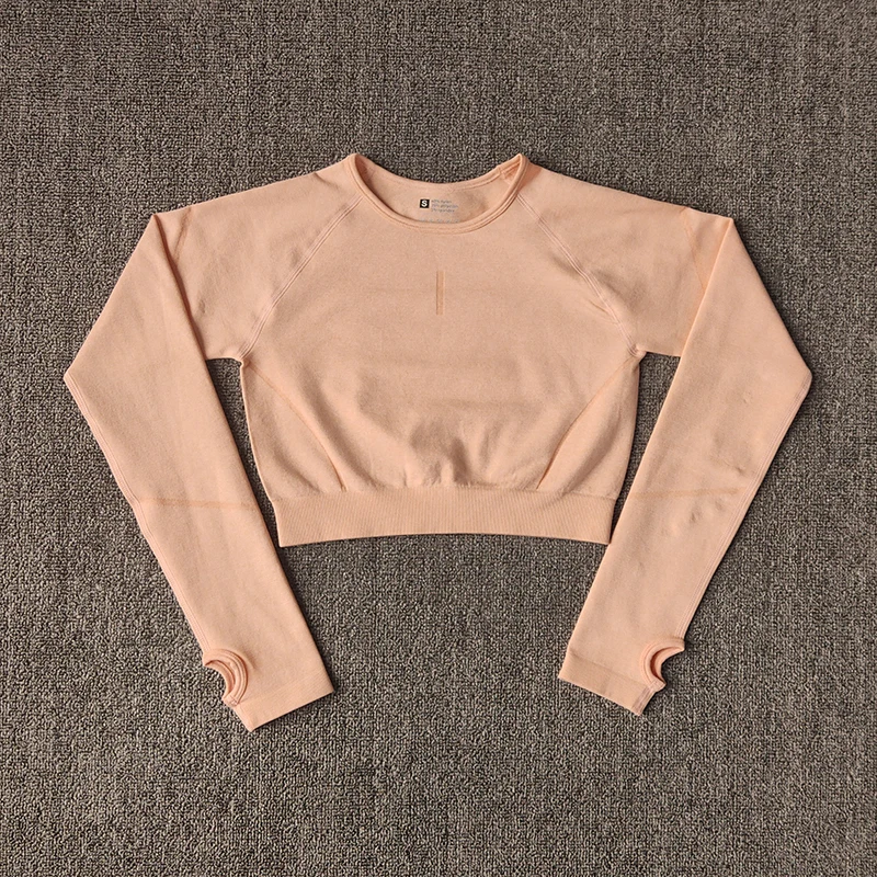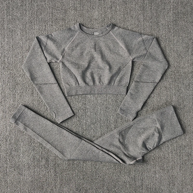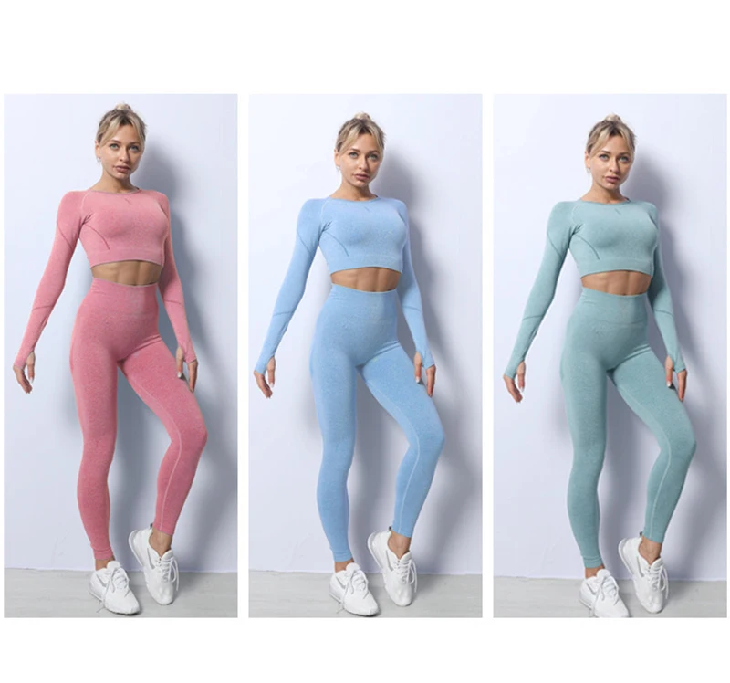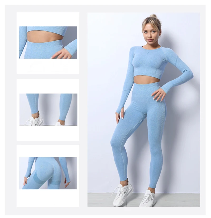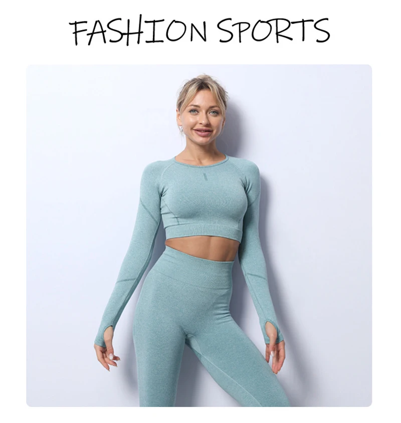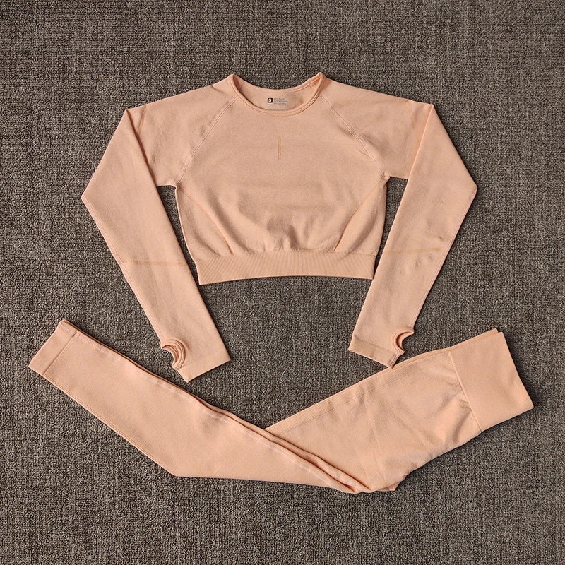 Женский бесшовный спортивный костюм для йоги, однотонный спортивный костюм с длинным рукавом, леггинсы и длинная рубашка для фитнеса