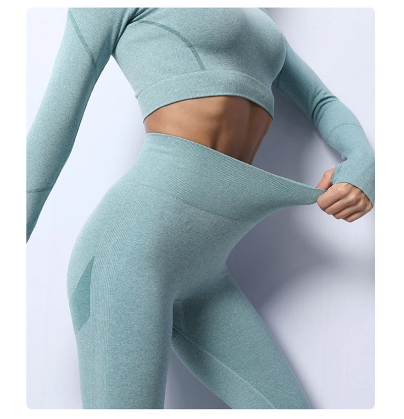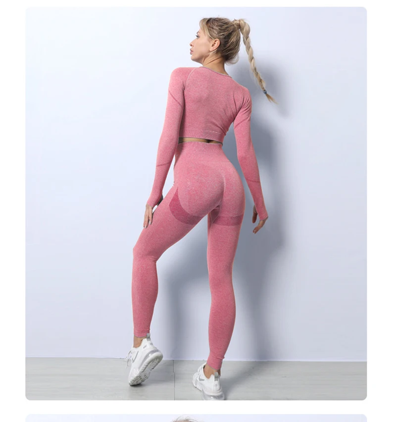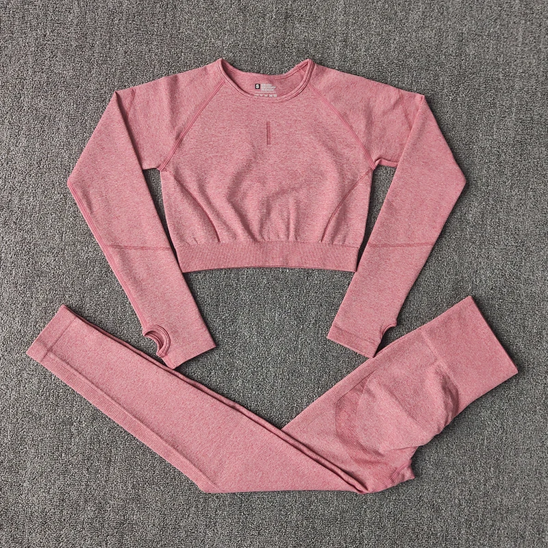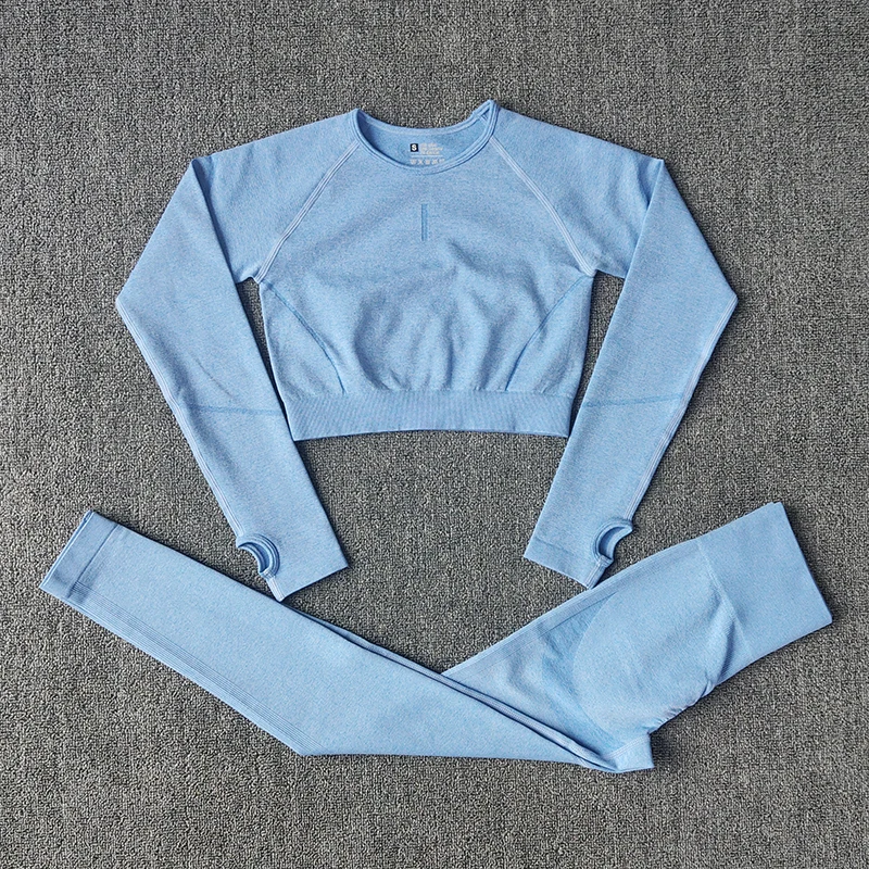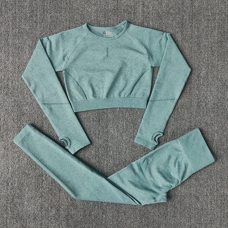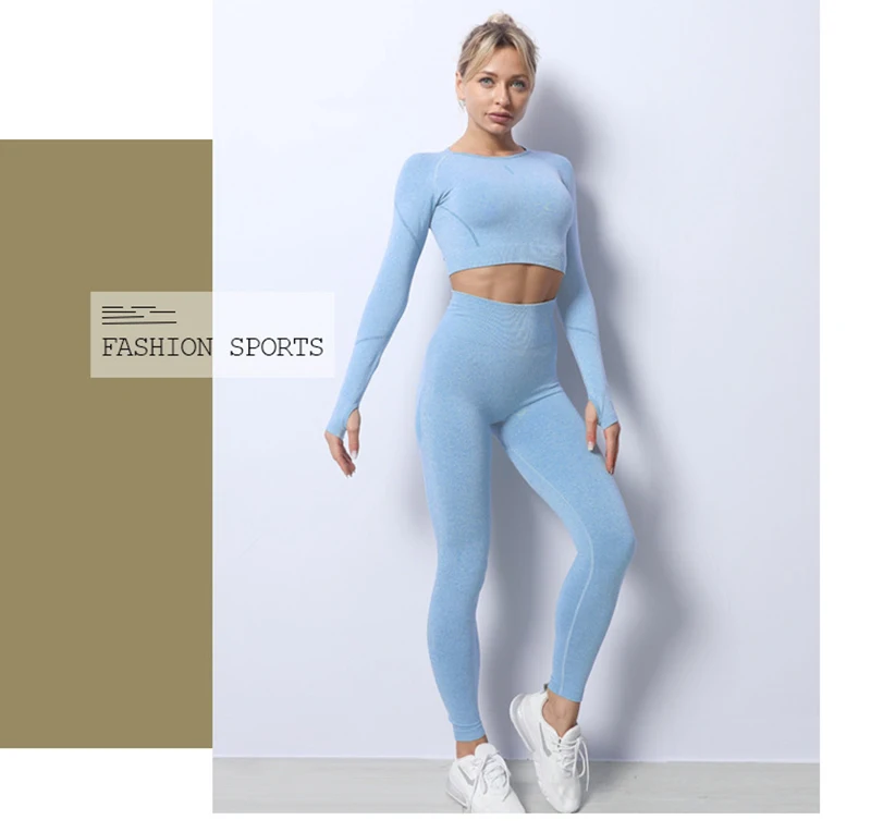 Женский бесшовный спортивный костюм для йоги, однотонный спортивный костюм с длинным рукавом, леггинсы и длинная рубашка для фитнеса