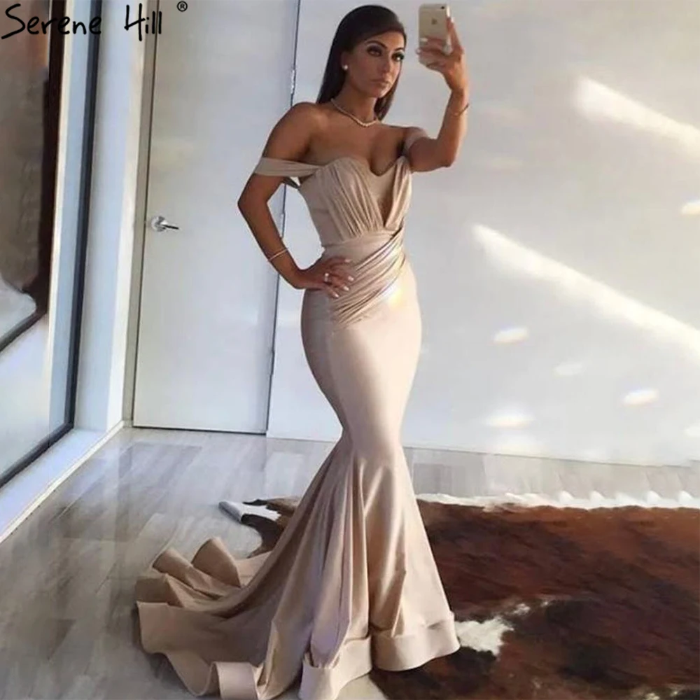 Атласные вечерние платья цвета шампанского, элегантные платья русалки, простые сексуальные для женщин, вечерние платья для вечеринок, BLA70930 Serene Hill, 2021