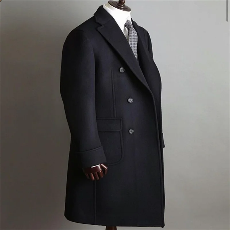 Деловые темно-синие мужские костюмы, Толстая шерстяная мужская курт...