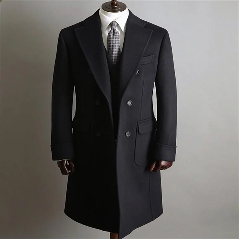 Черные мужские костюмы, официальный костюм для жениха, двубортный индивидуальный смокинг, подходит для вечеринки, красивое длинное пальто