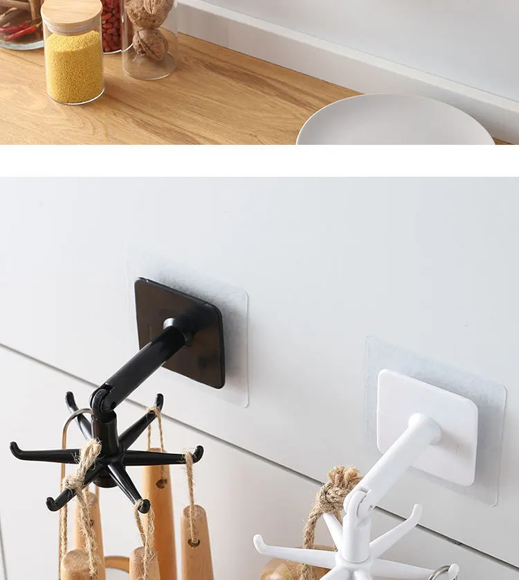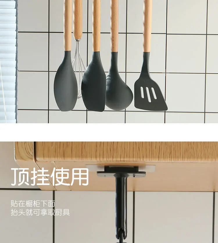 Вращающийся крючок без отверстий, выдвижной кухонный крючок, настенная подвесная кухонная посуда, лопатка, ложка, стойка для ножей, шкаф для хранения