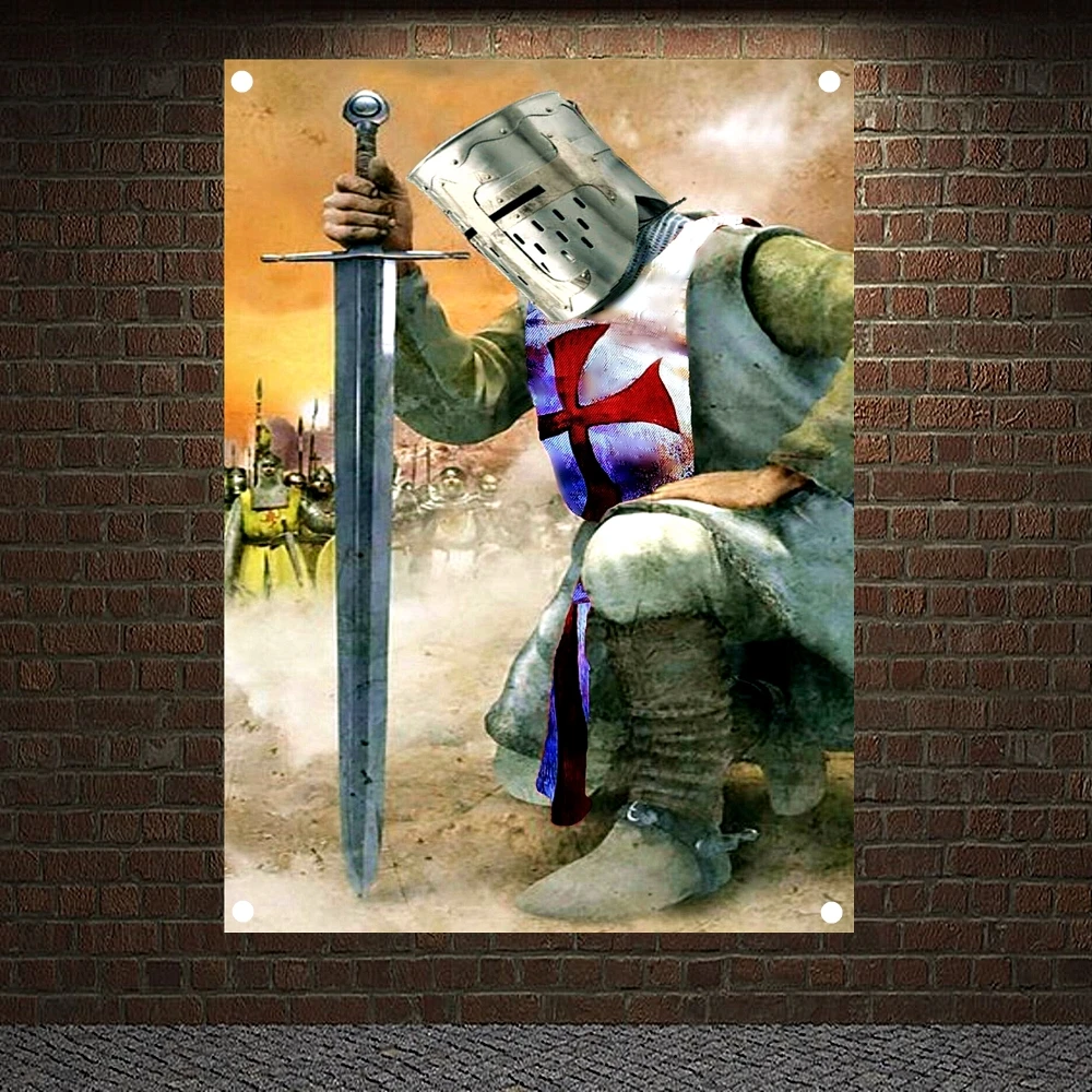 Рыцари Templar художественные баннеры винтажный средневековый воин постеры настенные художественные флаги роспись на холсте украшение для дома R4