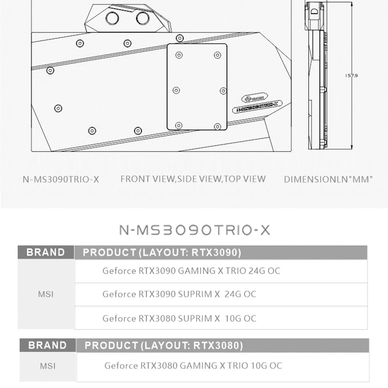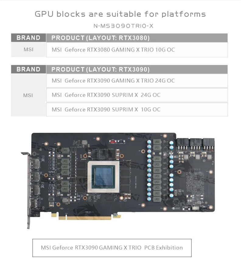 Водяной блок Bykski для MSI RTX 3080 GAMING X TRIO 10G OC RTX3090 ...