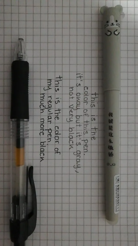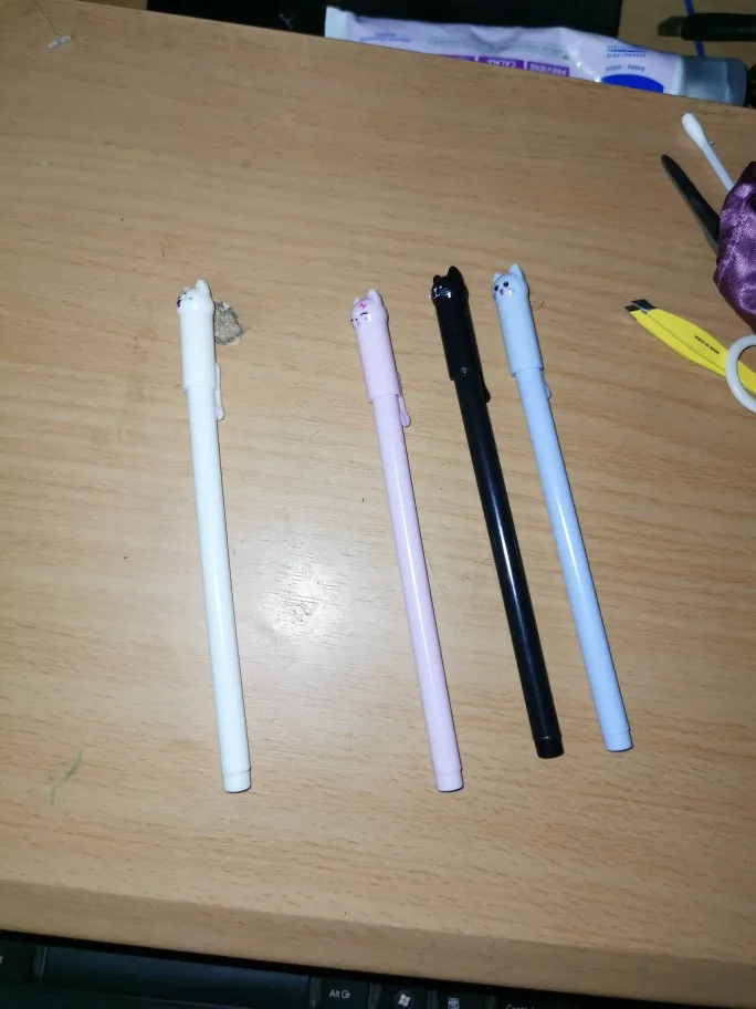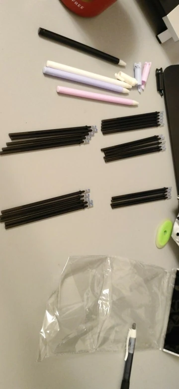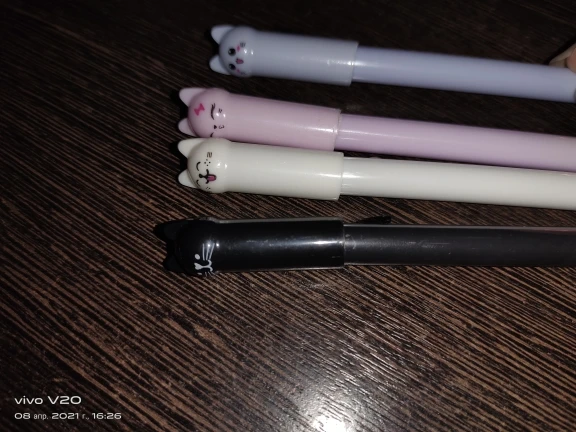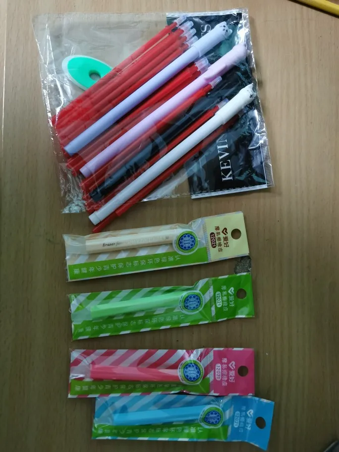 The order arrived very quickly. Everything's alright, the pens are just as shown in the pictures. The pens write very precisely and smoothly, however the color is more gray than black. Erasing is a little hard, you must apply some pressure, but it works (just be careful if you are using a very light paper)