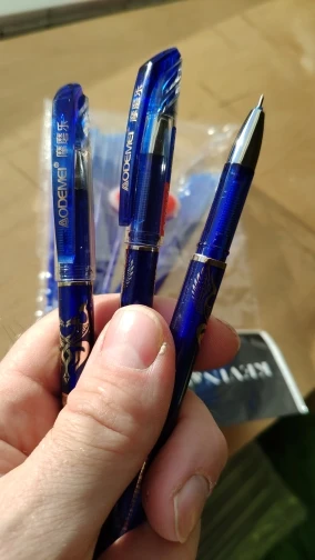 Очень хорошие стираемые ручки. Они пишут отлично и легко стираются. Я обязательно куплю их снова, так как они идеально подходят для тестирования и не оставляют пятен