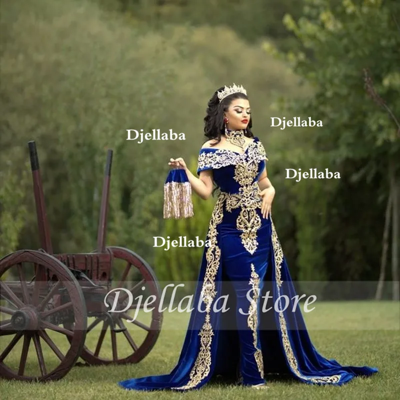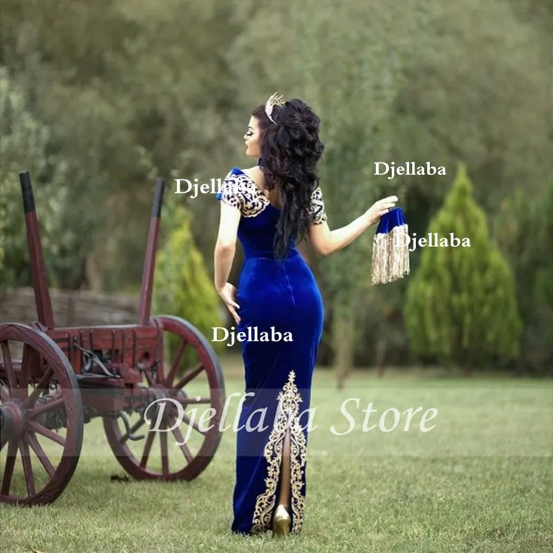 Королевское синее вечернее платье, традиционное кафтан из Алжира, свадебное платье, кружевное марокканское кафтан, бархатные женские платья для выпускного вечера с открытыми плечами