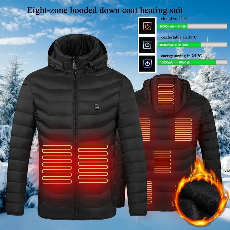 Пуховик с электрическим подогревом для велоспорта, пешего туризма, катания на лыжах, хлопковое пальто, жилет с капюшоном и USB-подогревом, зимняя уличная теплая куртка