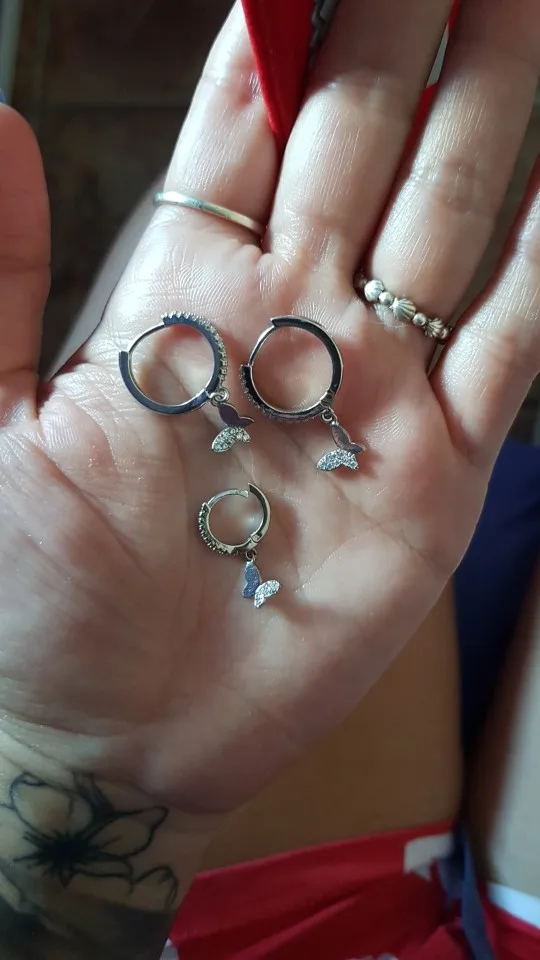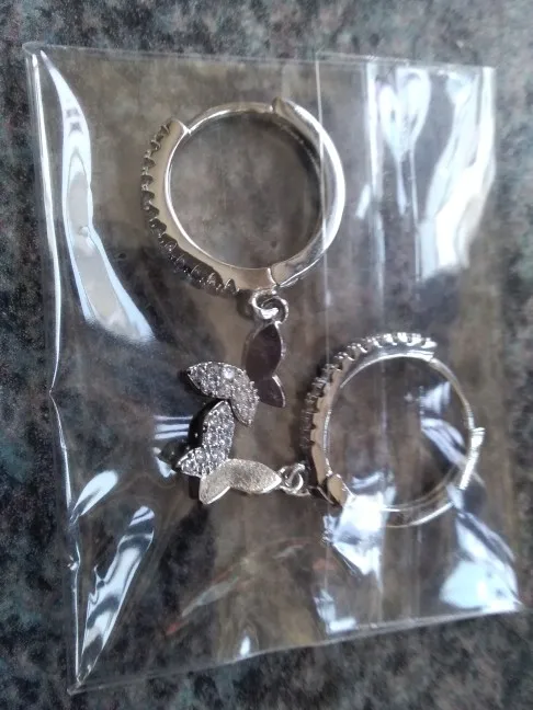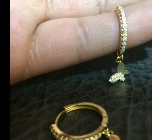 Я потерял серьгу, и поэтому я попросил ее снова, и когда она прибудет... Он сложен (хотя он поставляется хорошо упакованным), он намного больше и весит больше. Я был очень разочарован, потому что первые, о которых я просил, мне понравились. Я оставляю вам фотографию первой сережки, с которой они пришли ко мне сегодня.