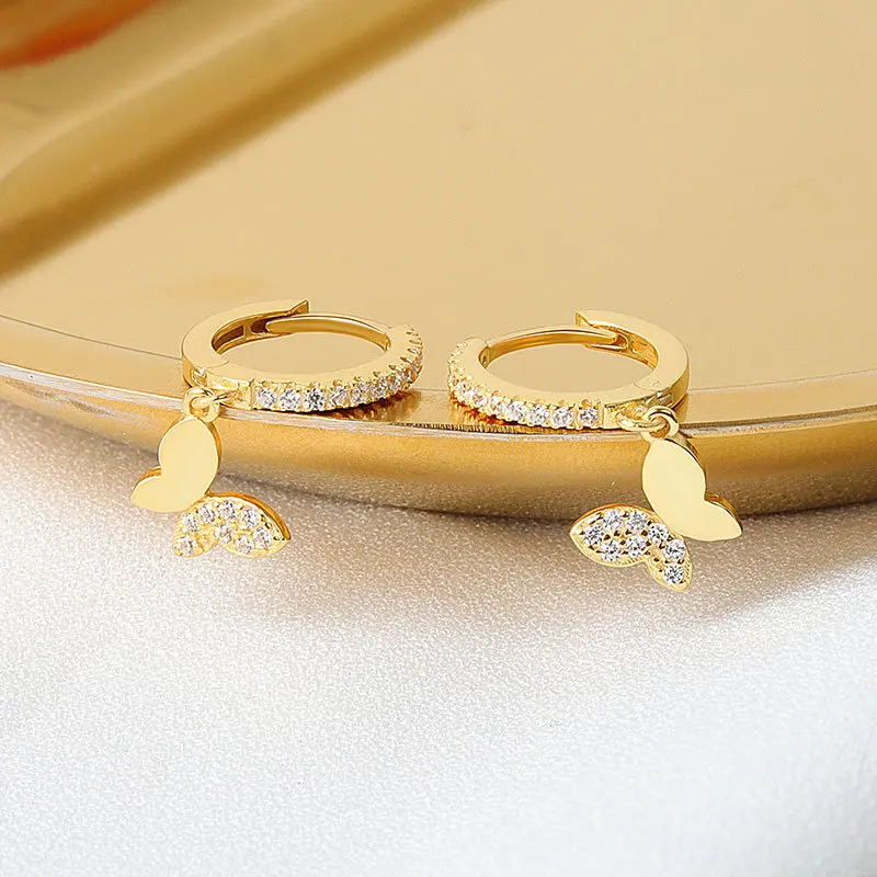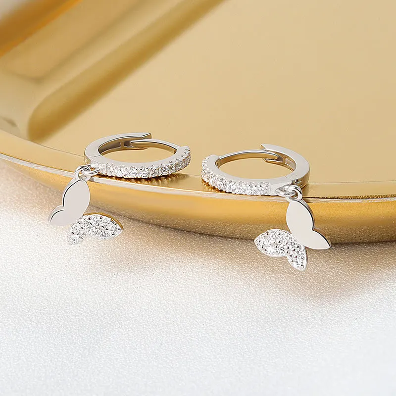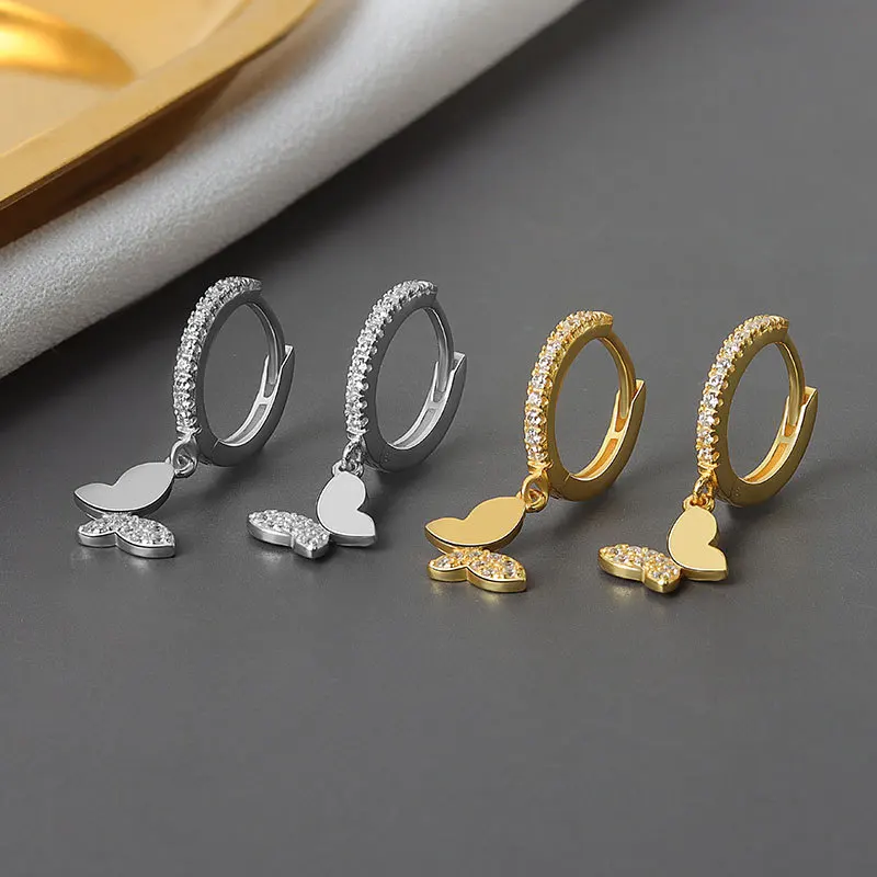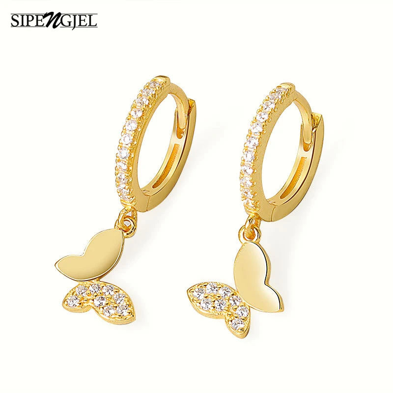 Модные блестящие серьги-кольца SIPENGJEL в стиле панк с цирконием и бабочками, креативные простые серьги-подвески для женщин, ювелирные изделия 2021