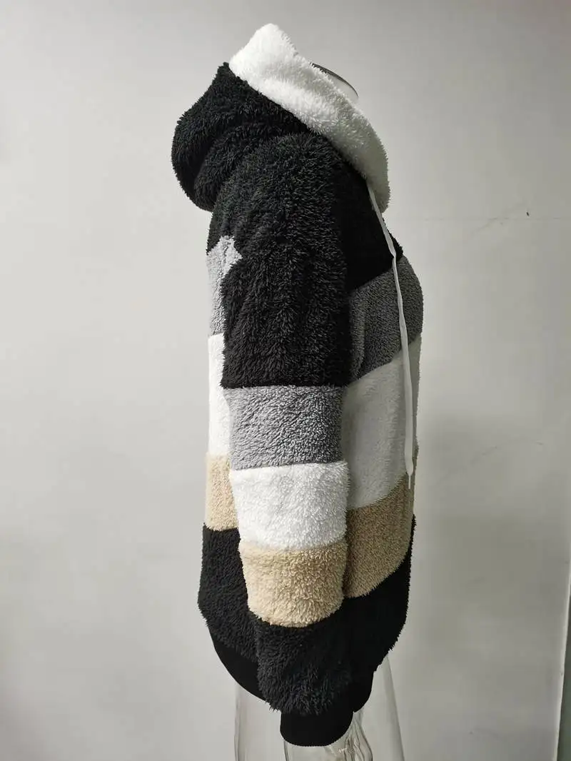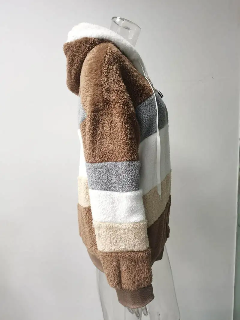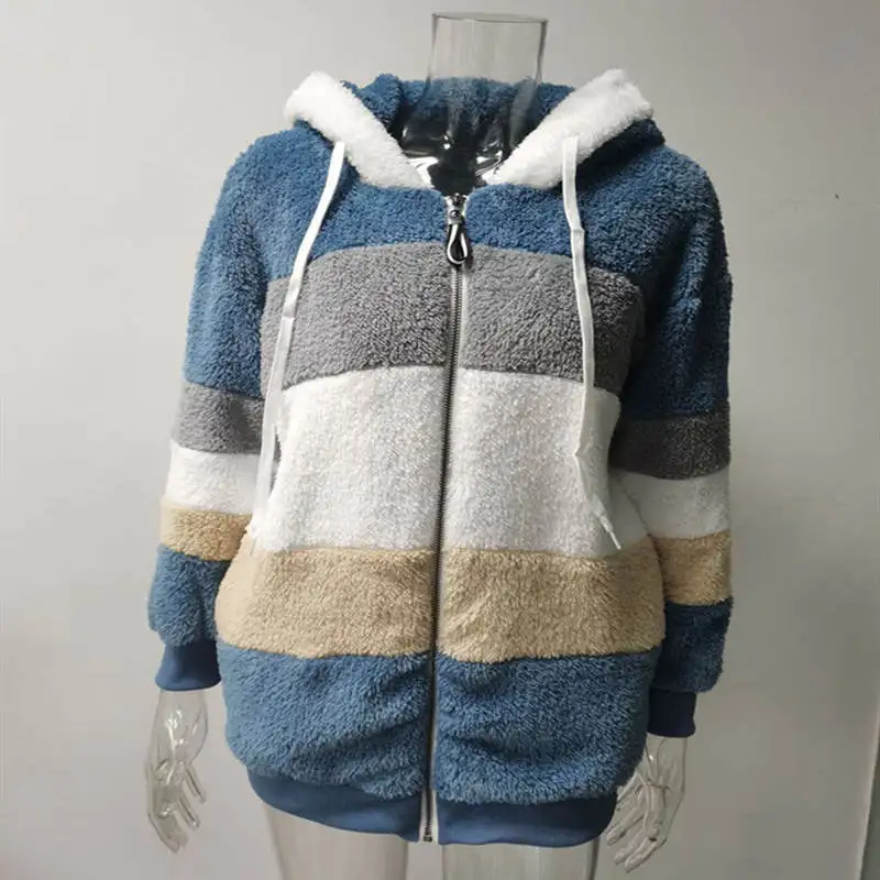 Пальто женское из искусственного меха, с капюшоном и длинными рукавами, на молнии