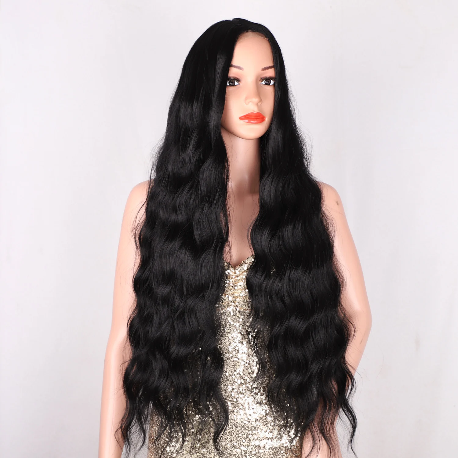 Великолепные Синтетические длинные волнистые парики для чернокожих женщин, парик средней длины, термостойкий волоконный парик для вечерние НКИ на каждый день