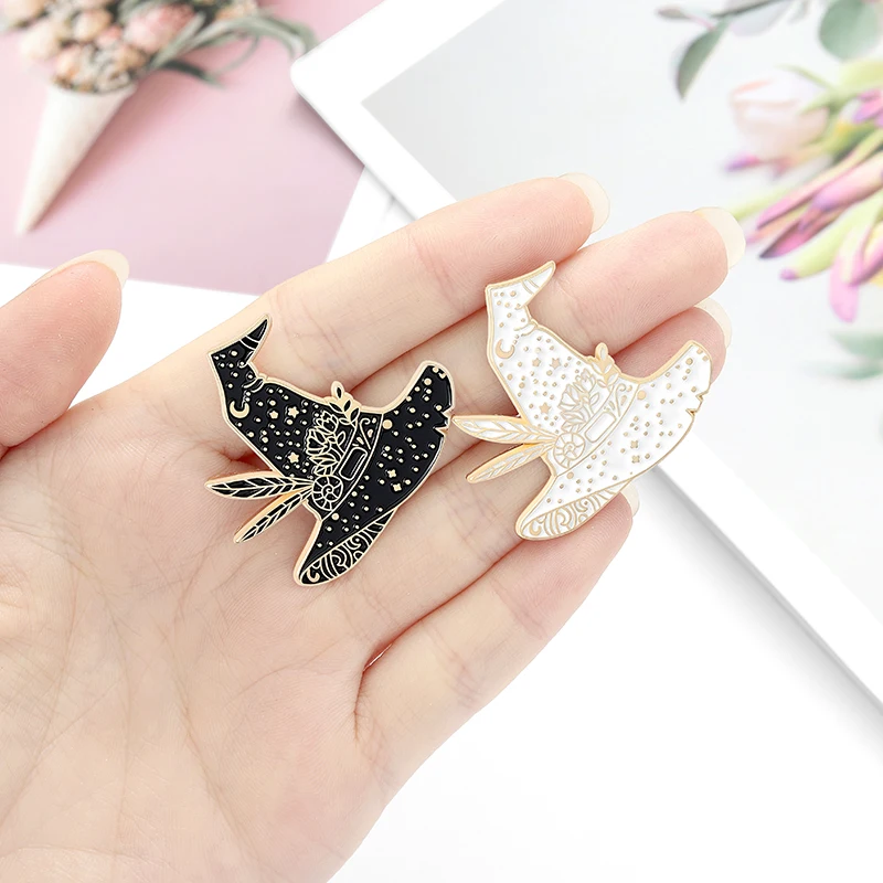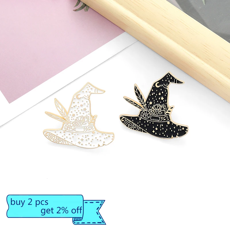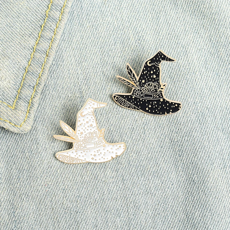 Изготовленный На Заказ черный, белый цвет по выбору в стиле панк из эмали штырь с изображением луны и звезд, ведьма брошь шляпа Сумка Одежда блестящий значок в готическом стиле, ювелирное изделие в подарок для друзей