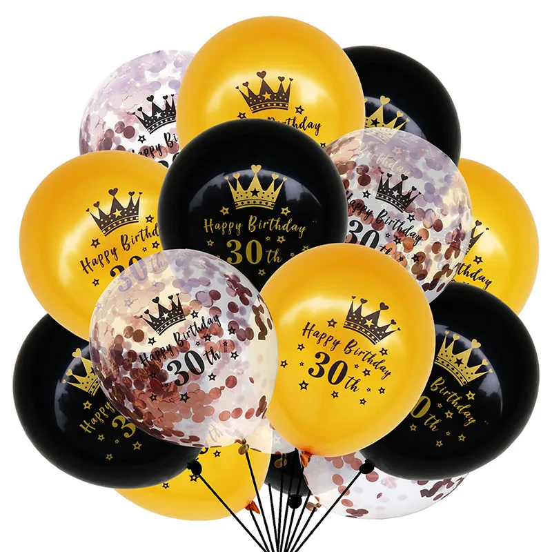 Латексные шары 18304050, 15 шт., черные золотые шары с конфетти для вечеринки на день рождения, принадлежности для украшения Воздушные шары ко дню рождения для взрослых