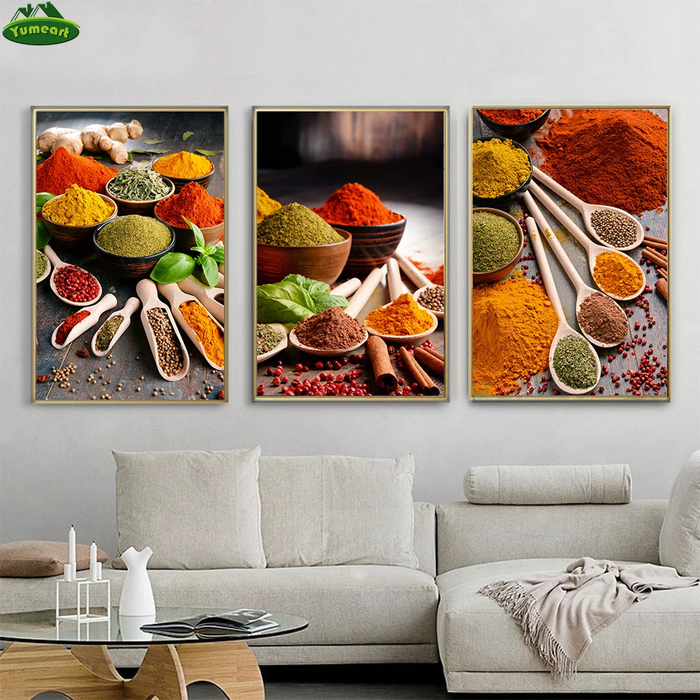 Специи Yumeart, имбирь, куркума, перец, Картина на холсте, настенное искусство для кухни, ресторана, домашний декор, HD картины, холст, постеры