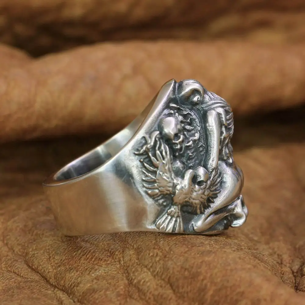 925 пробы Серебряное Сексуальное кольцо с черепом для девушек мужское кольцо в стиле панк TA258 размер США от 7 до 15