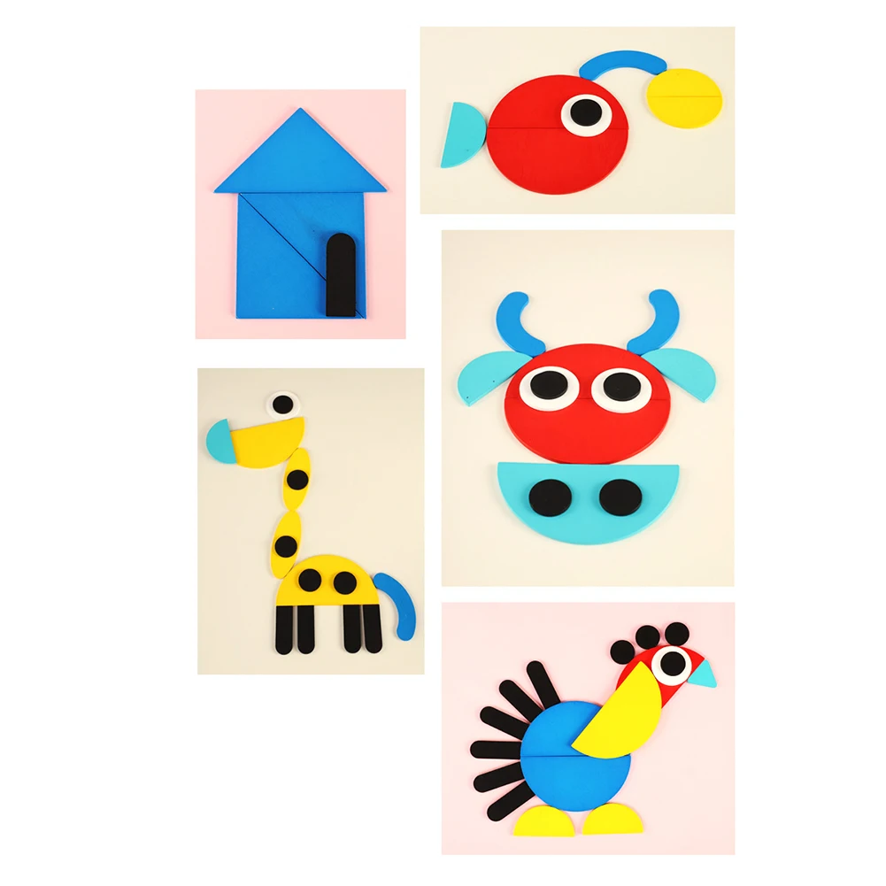 Деревянные головоломки в виде животных Tangram, английская карта, обучающая детская игрушка