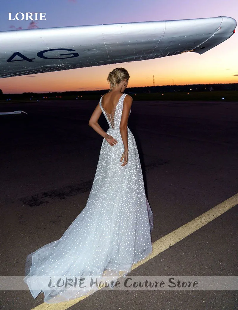LORIE тюлевые свадебные платья в горошек, ТРАПЕЦИЕВИДНОЕ сексуальное свадебное платье с V-образным вырезом и открытой спиной для девочек