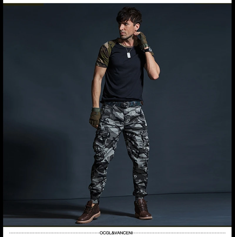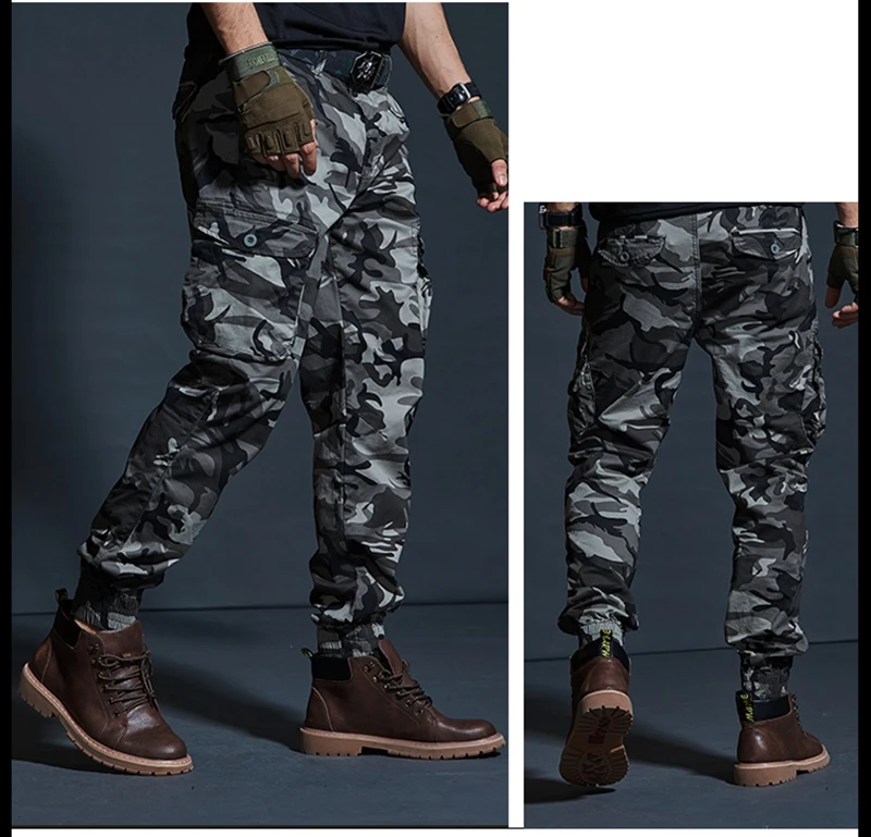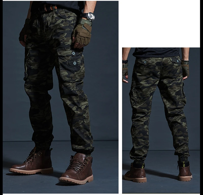 Мужские камуфляжные брюки-карго, с несколькими карманами, в стиле милитари