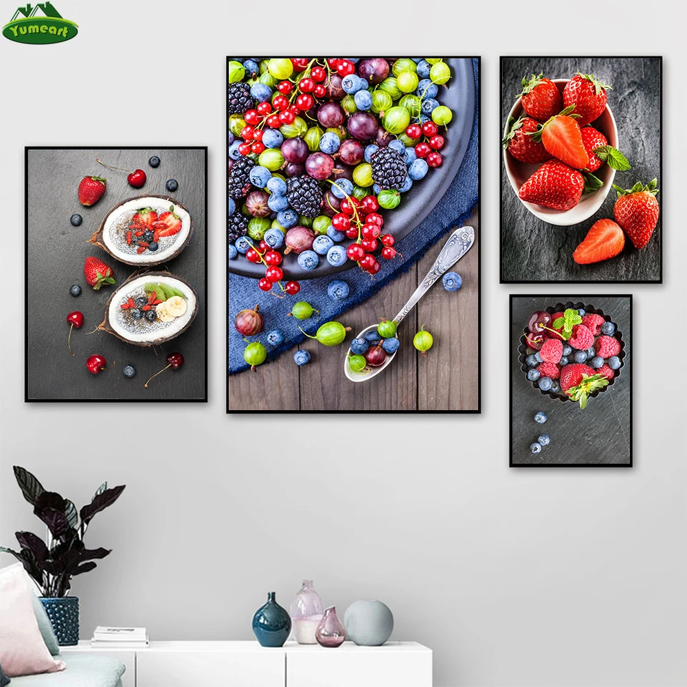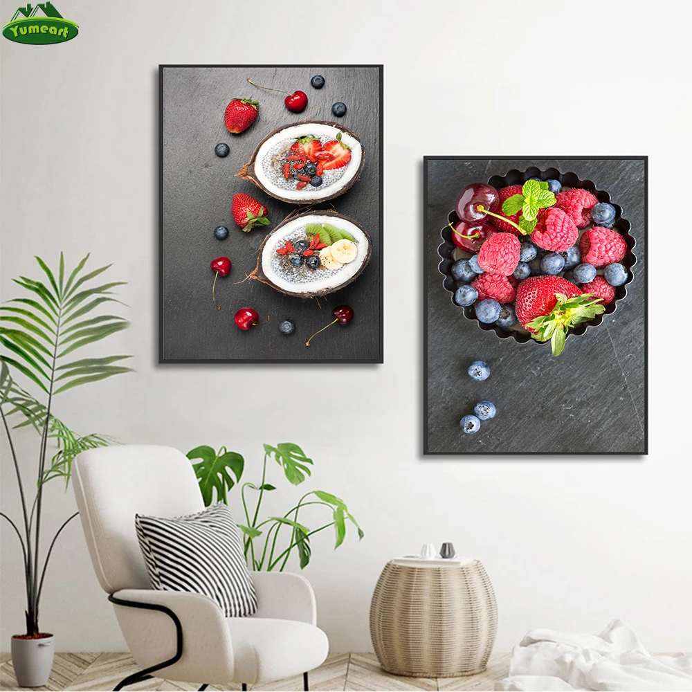 Yumeart кухонный плакат для еды, Картина на холсте с принтом черники, тутового клубники, йогурта, картина для столовой, домашний декор
