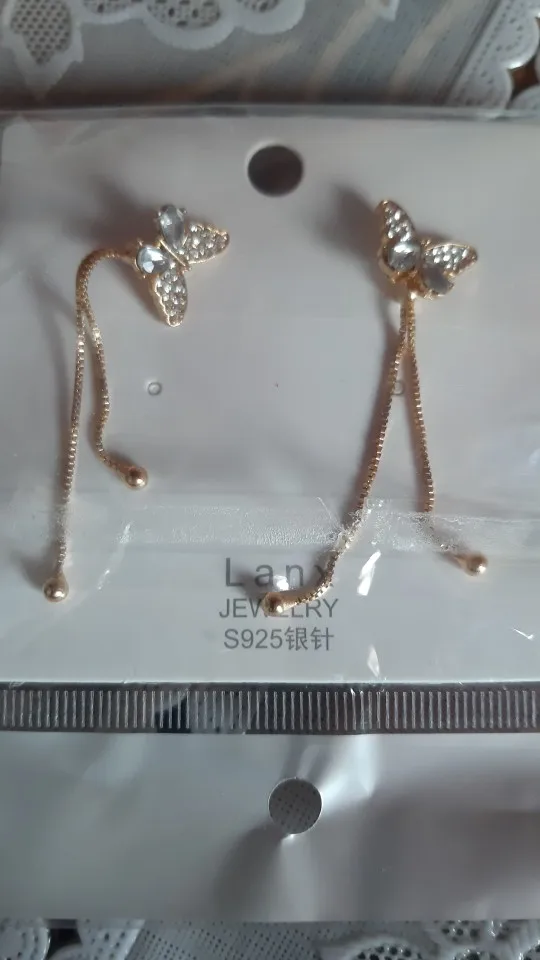 Серьги-Подвески ручной работы женские, висячие ювелирные украшения для Стразы с бабочкой и кисточкой, металлическая цепочка золотого цвета, ювелирные изделия