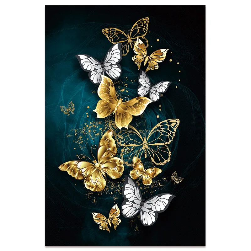 Современный минималистичный плакат с изображением синей золотой бабочки на холсте, настенная Картина на холсте, настенное украшение для гостиной, домашний декор